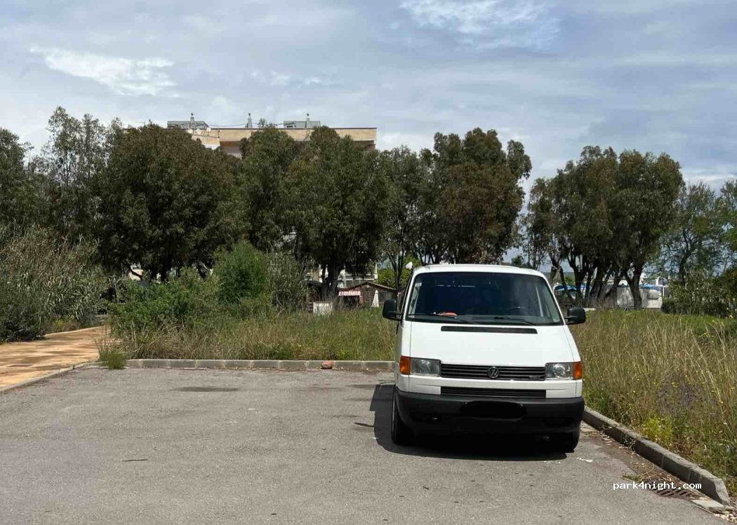 Space for 4 vans. Paved. Next to the campsite and with direct access to the beach. Fountain for washing the sand off your feet.
