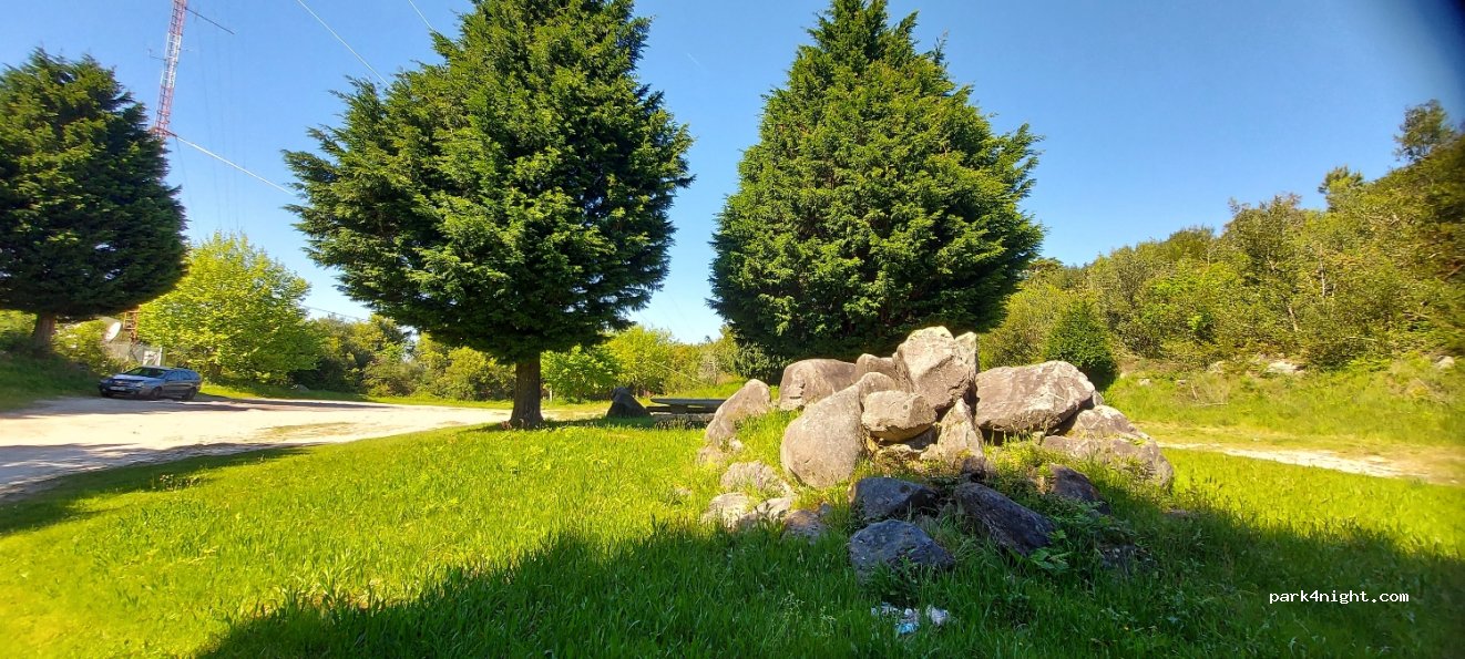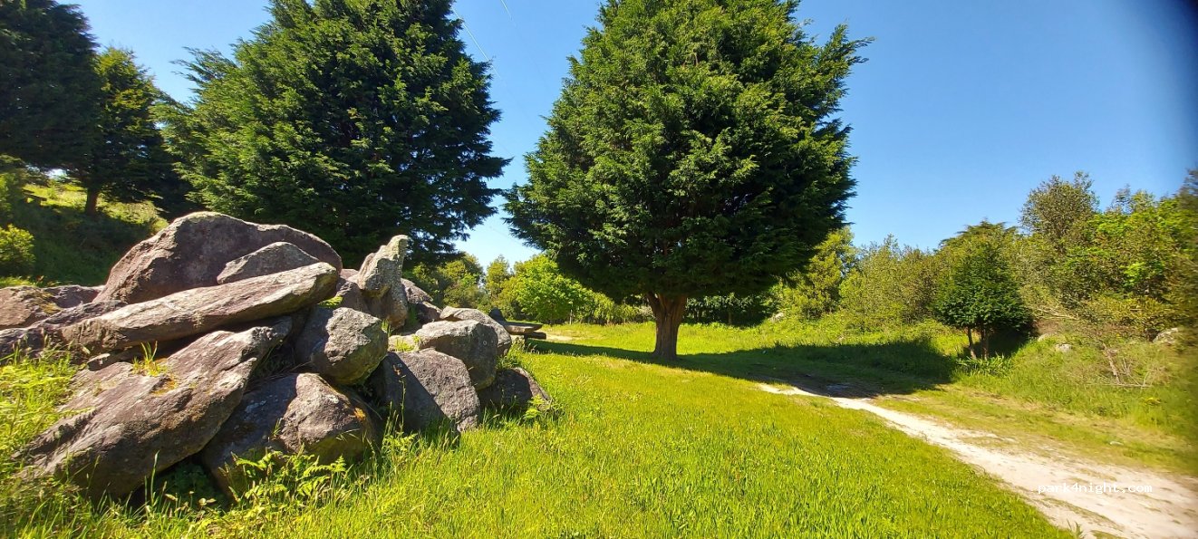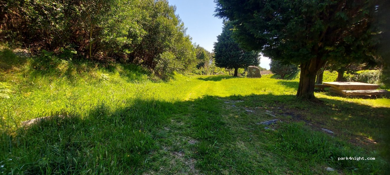 Toller Aussichtspunkt...absolut ruhig...nur 2 km vom Strand...mitten in der Natur...herrliche Aussicht vom Gipfel...nur 100m Fußweg...wir haben hier übernachtet, waren alleine...absolut ruhig...und im Grünen...auch wieder...super auch für unseren Hund...konnten frei herumlaufen...5 Sterne von mir...kein Service...nichts...bitte sauber hinterlassen...Zufahrt über breite Kopfsteinpflasterstraße...etwas holprig...nicht alles auf dem Gelände ist eben...man muss sich hier einen Platz suchen...wir waren mit dem Bulli hier