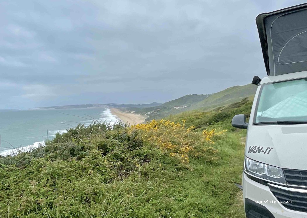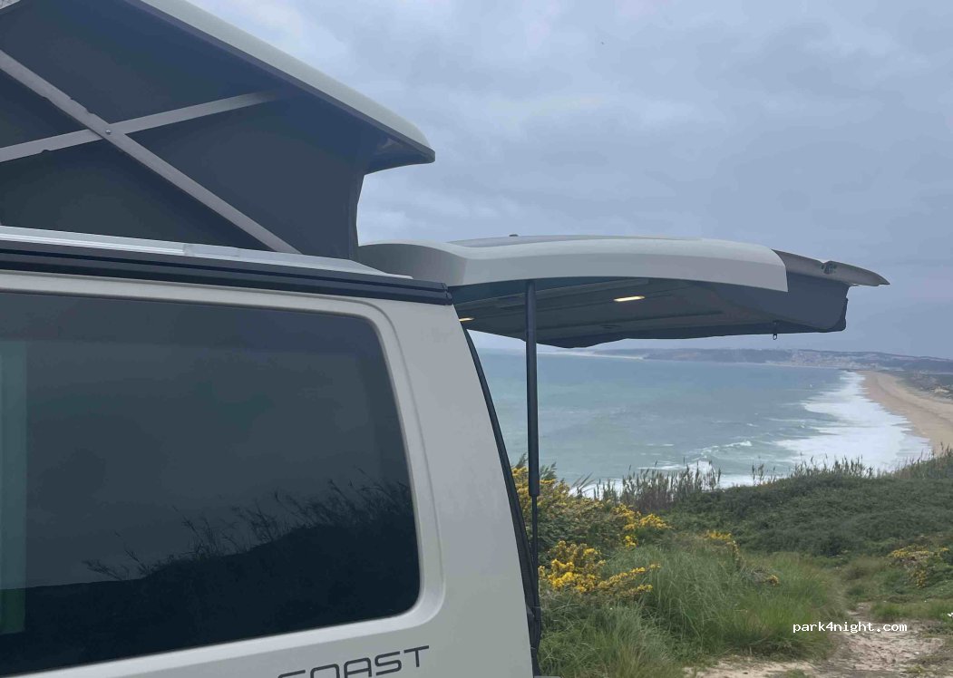 We slept here instead of by the sea as it had been a storm and the waves were super loud in a roof tent. It’s not particularly pretty but you can just see the sea still and we were not disturbed. Ps. Please bring a shovel or take your waste! Its like an open air toilet in the bushes behind :(