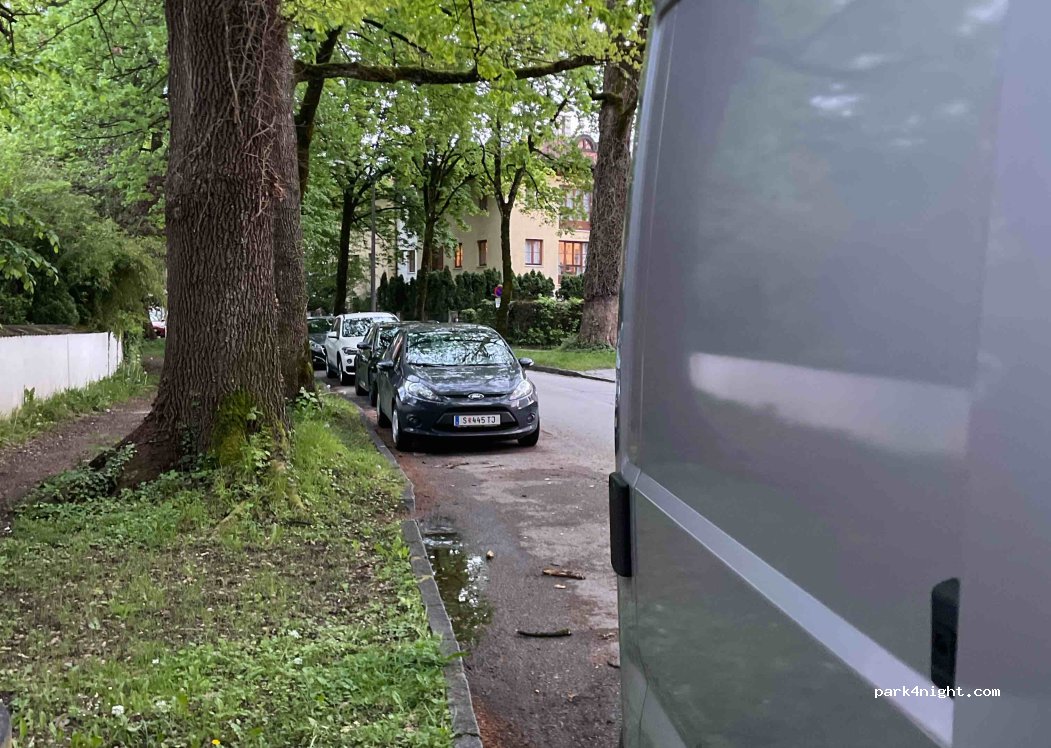 Ruhiges Parken entlang der Straße. Es kann entlang der ganzen Straße geparkt werden. Man Parkt unter Bäumen und es ist ein Grünstreifen neben den Autos. Fußläufig ca. 15‘ bis zur Innenstadt. Billa Supermarkt in 5‘ Fußweg entfernt.