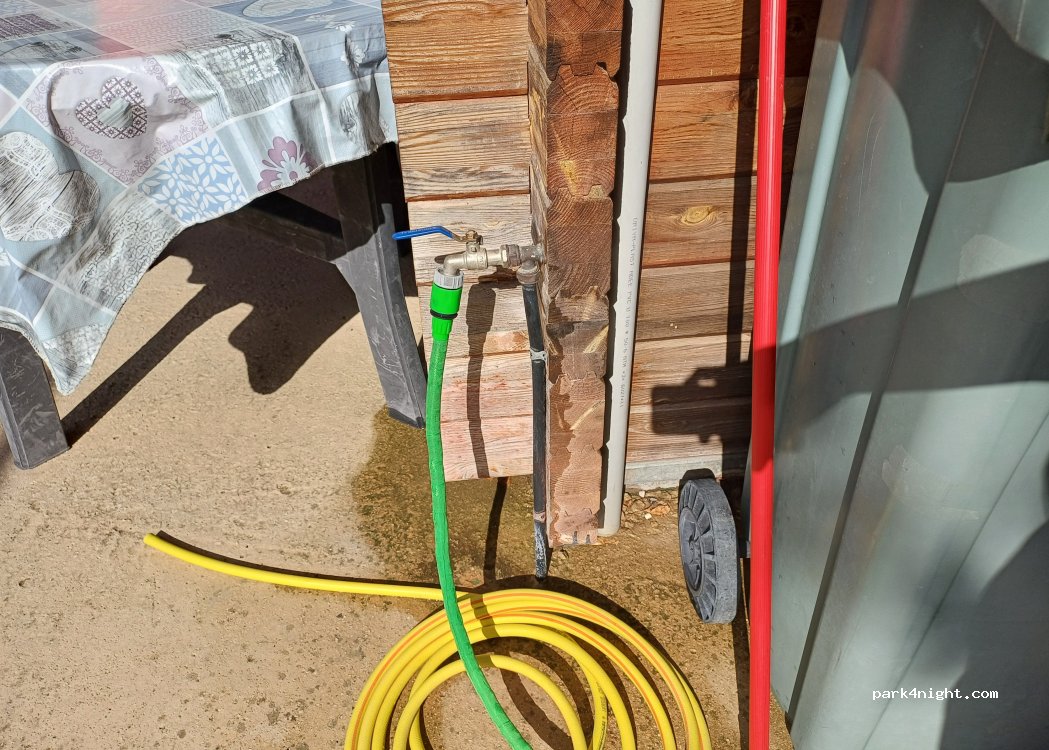 Wasserentnahmestelle neben dem Tennisplatz. Guter Verkehrsfluss und ausreichend Parkplätze