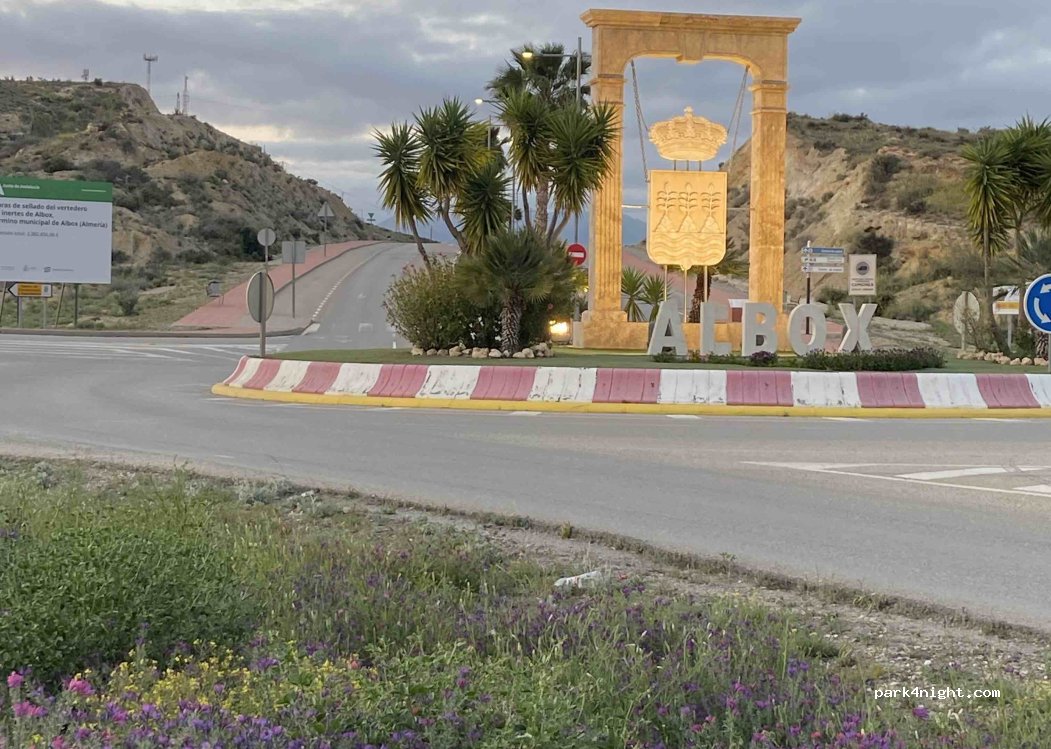 Große, asphaltierte Fläche auf ebenem Gelände mit guter Aussicht auf die umliegende Landschaft. Etwas weiter hinten hinter dem Parkplatz gibt es illegale Müllablagerungen. Die nahegelegene Stadt Albox mit ihren vielen Bars und Restaurants ist leicht zu erreichen. Albox ist nicht für Wohnmobile oder große Campervans geeignet, aber mit meinem 6-Meter-Fiat kein Problem. Der Parkplatz ist nach Einbruch der Dunkelheit relativ ruhig und liegt 35 Minuten von Mojácar entfernt.