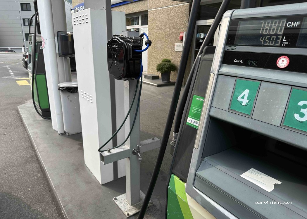 Kostenloser Wasserhahn an der BP-Tankstelle, direkt neben Zapfsäule 4 (unter der Reifenluftversorgung). Standard-Gardena-Anschluss, guter Wasserdruck, leicht zu öffnen und zu schließen. Bei meinem Besuch am Sonntag war die Tankstelle unbeaufsichtigt (nur Kartenzahlung möglich). Ruhiger Ort, ideal für eine schnelle Tankfüllung. Bei einer Tankstelle unter der Woche ist es höflich, nachzufragen und gegebenenfalls ein kleines Trinkgeld zu hinterlassen.