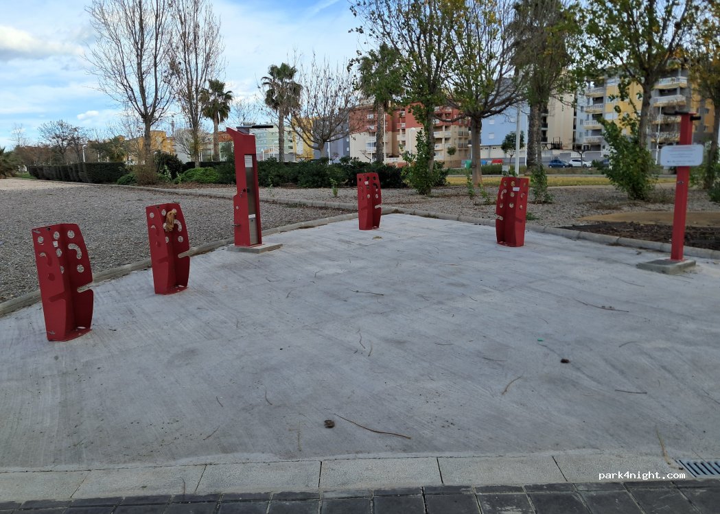Large parking lot next to the Consum. we spent 3 nights there. the police came by and did nothing except not to take anything out, so no camping but the air with the services is 300 meters away.