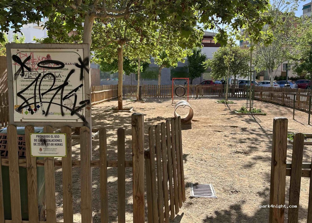 Parque para animales con una fuente tanto para perros como para nosotros. Además hay cubos de basura y juegos para los animales. También hay bancos y sombra. El horario de la zona del parque de perros es de 7.00h a 23.00h, pero los bancos y la papelera están fuera del recinto.