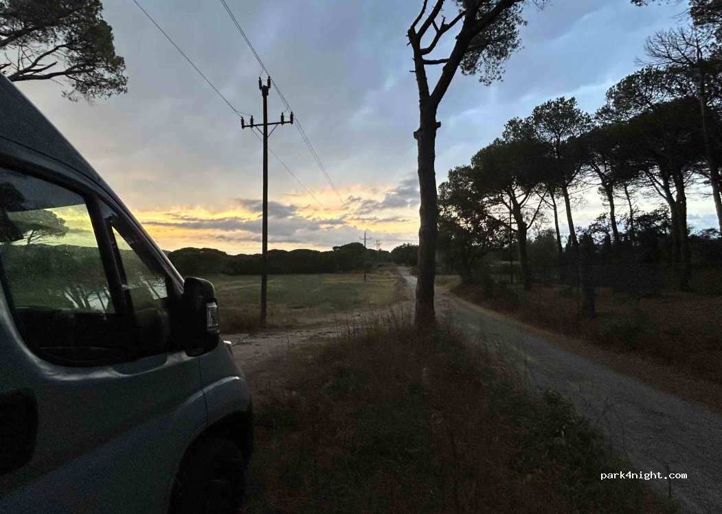 Lugar tranquilo y rodeado de árboles perfecto para pasar el día. Desconozco si se puede pernoctar, está al lado de un camino secundario detrás de una urbanización. Un lugar muy agradable y donde pasa algún coche y gente en bicicleta. Haced un buen uso por favor y mantengamos este estilo de vida lejos de críticas y odios. No es necesario que se note que alguien ha estado ahí.