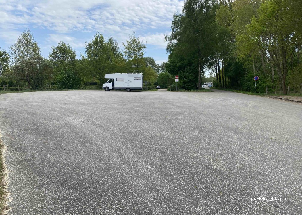 Espacio de estacionamiento/rotonda de giro frente a una playa/espacio de estacionamiento para vehículos recreativos pago. Se tolera la pernoctación en la zona asfaltada. Sin embargo, si continúa conduciendo, está prohibido acampar o estacionar una autocaravana. El curso está abierto durante la temporada (mayo-octubre). Sin embargo, se puede aparcar durante todo el año.