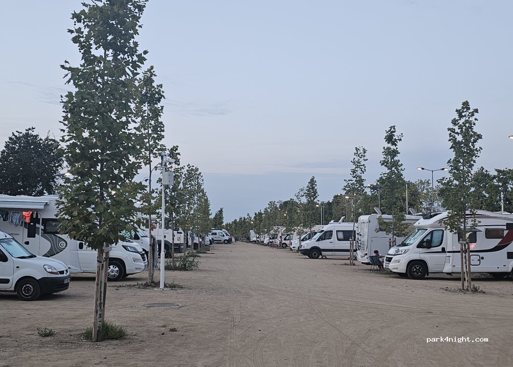 Buen aparcamiento y no es caro 6 €/dia, estas a 20 minutos de la playa caminando y a 15 del centro de Salou. Lo malo es que no tiene sombra, y en verano pega el sol mucho. Así como tampoco tiene servicios de llenado ni vaciado.
