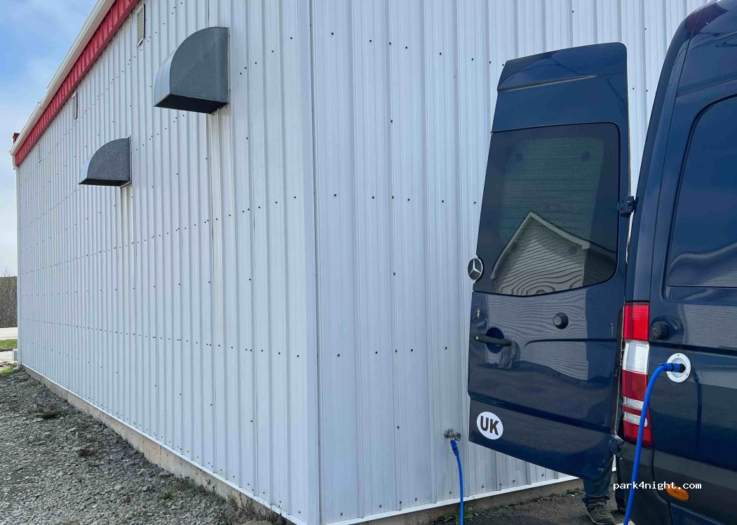 Water tap at the Petro Canada station. Needs to be turned on by the staff inside. No purchase necessary.