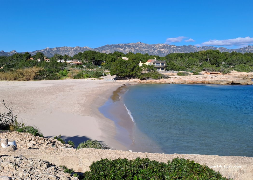 Buen lugar donde parar y hacer noche, cerca de varias calas muy bonitas. Lastima que no disponga de servicios y de que no tenga ningún tipo de comercio cercano más que un chiringuito en una de las playas. El pueblo muy lejos para ir a pie.