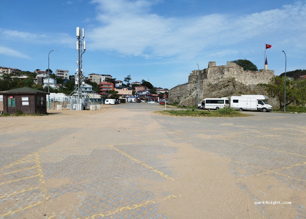 Riva beach parking area. Motorhomes can stay free of charge outside the season. There are drains for grey water. Domestic water is taken from the mosque fountain which is very close. The center is 2 minutes walking distance and there is everything like bakery, market, restaurant etc.