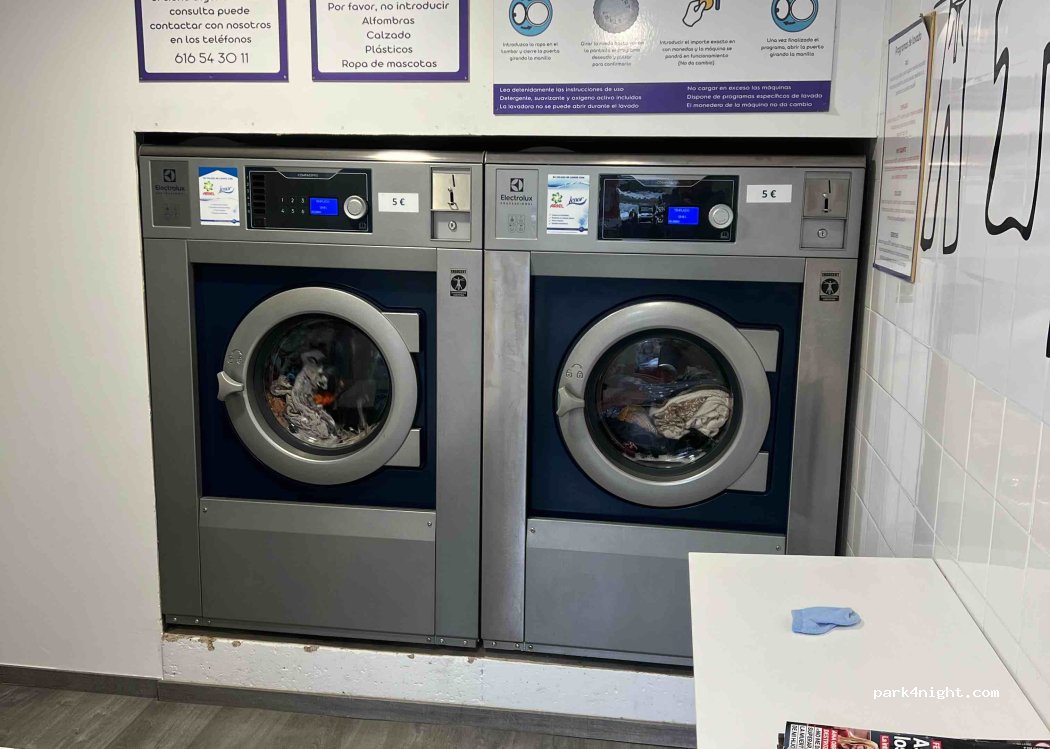 Lavandería de autoservicio con dos lavadoras y dos secadoras de 17 kg. Abierto todos los días de 8 a 22 h.