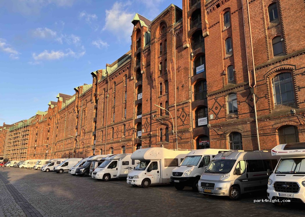 Bon emplacement pour visiter Hambourg. Pris à 80% par des CC et vans lors de ma venue. Stationnement non autorisé en semaine. En revanche j'ai payé le samedi. Limité à 3h, pas vraiment respecté par la plupart...