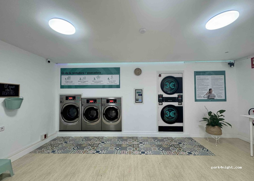 Self-service laundry. Open from 8:30 a.m. to 10 p.m., Monday through Sunday. Accepts 50 cent and €1 coins.