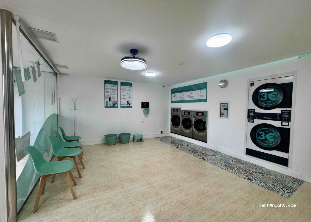 Lavandería autoservicio. Horario de 8:30 a 22h de lunes a domingo. Va con monedas de 50 ct y 1€