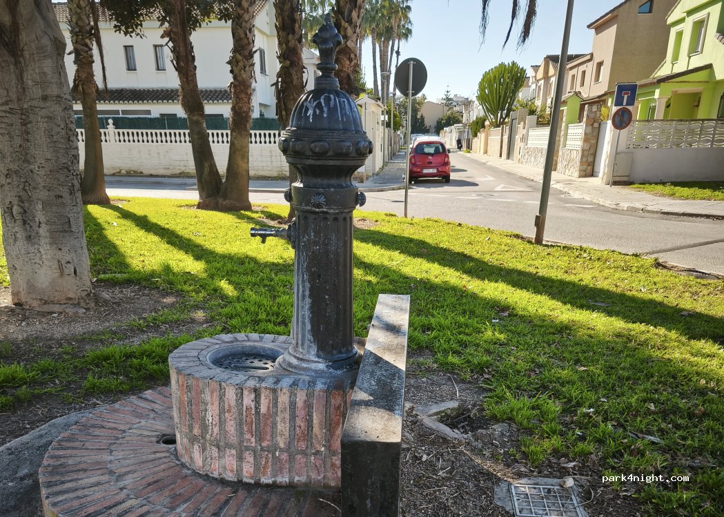 Debit moyen, pas de filetage, beaucoup de parking autour. C est un peu limite pour le respect du lieu mais on peut se garer directement face au robinet en montant sur l herbe du terrain de jeu.