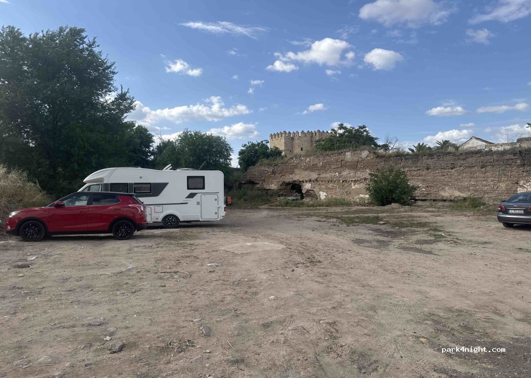 Parking pratique à quelques minutes à pied du pont romain et d'une aire de jeux pour enfants. Des guetteurs demandent quelques euros pour la journée. Nuit paisible passée sur ce parking après super soirée sur Cordoue.