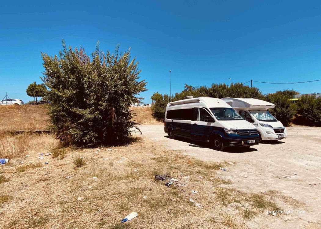 Het enige voordeel is dat je vlak bij de Romeinse brug geparkeerd staat en zo het centrum inloopt lopen er mannetjes die zeuren om geld en zeggen dat ze op je camper letten. Aan de overkant van het straatje zit een nettere P. Wij hebben €8 betaald. Gelukkig zat mijn carbon racefiets er nog op toen we terug waren. Wij hebben hier niet geslapen en waren op doorreis.