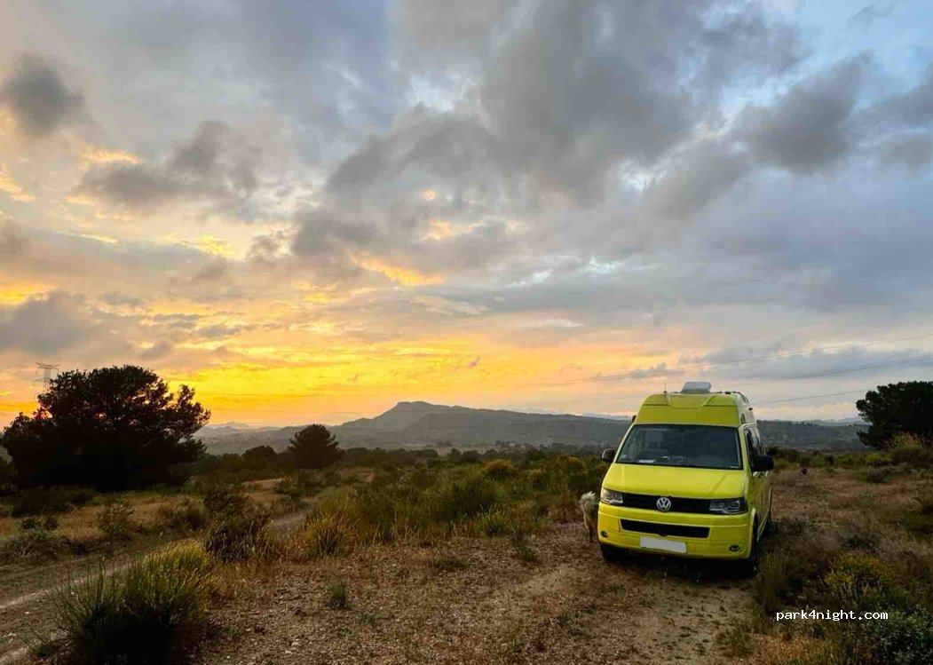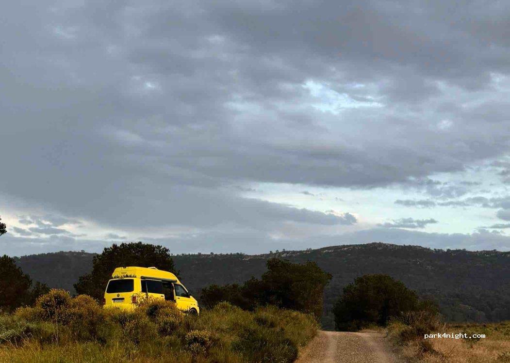 Nice little pocket by a seemingly unused road in the middle of nowhere. Quite secluded, has a good 360 overview while not really being very visible from anywhere. Nice spot to spend a night without being bothered by anyone at all. Make sure you have your own toilet and trashbags, as the spot is super clean and should remain so. Not fit for huge motorhomes, but a medium one would surely still fit, road isnt too troublesome either. There are some muddy lots around the place so take weather into account