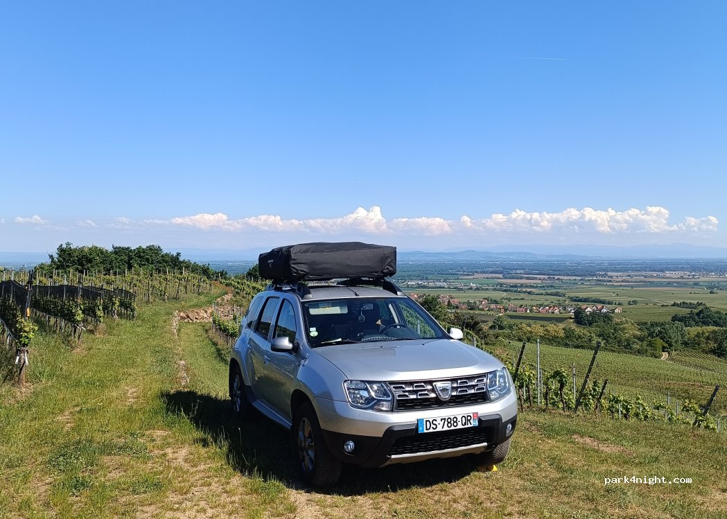 Very quiet location. Raised vehicle or 4x4 recommended. Flat parking without wedging. Follow the path along the woods then take the path that goes down. Parking next to the lookout.
