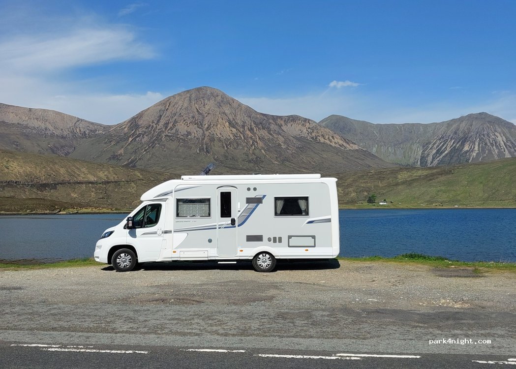 A wide gravel layby with room for 2 motorhomes. Amazing views.