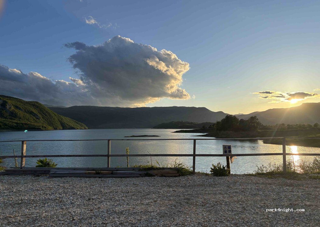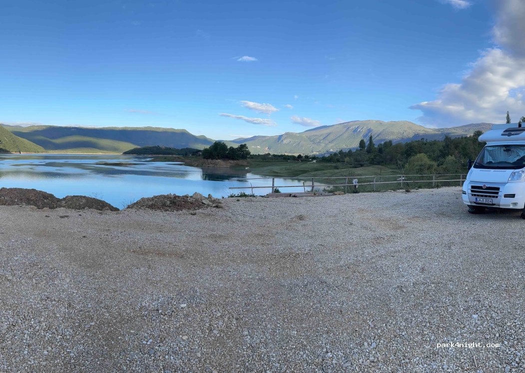 Très bon accueil. Patron chaleureux malgré la barrière de la langue. Très belle vue sur le lac avec possibilité de se baigner. Endroit très calme. Espace avec une table à l'ombre. Douche chaude. 15€ électricité comprise.