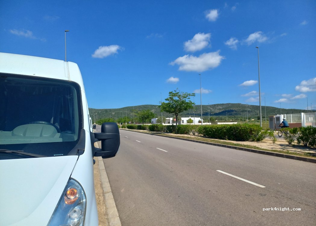 Lots of street parking in an unfinished industrial zone. I was there on a Friday night and it was silent. Nothing around but olive trees and occasional dog walkers. Water and toilets in a lot at the other end of town and the town sports hall kindly let me shower. Close to the beginning of the hike to the Xivert castle and old town ruins, which is easy and definitely worth doing.