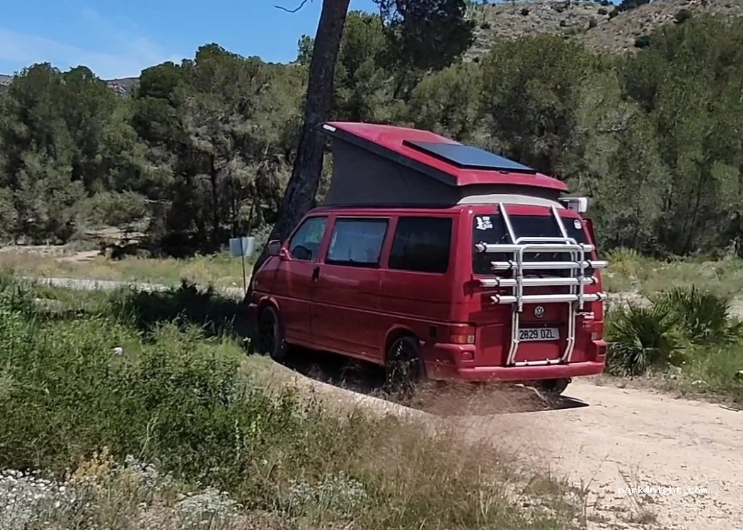 El lugar es un pequeño apartadero al lado de una pista poco transitada, algún coche y ciclista de montaña.