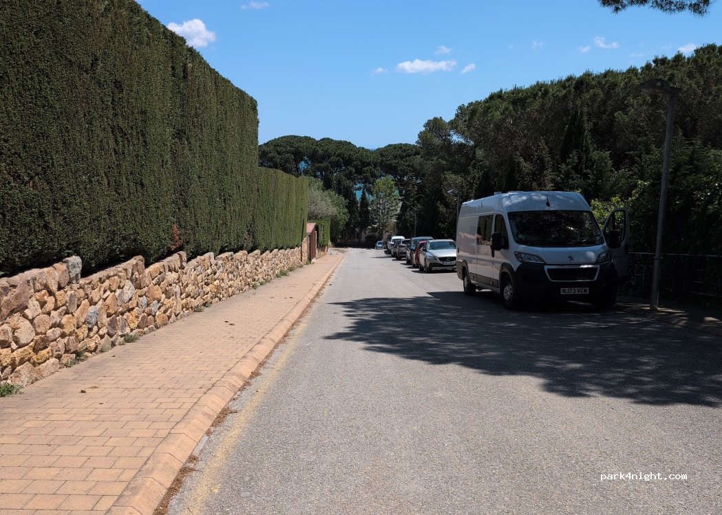 Side street parking, steep slope, OK for visiting ruins, no motorhome or caravan parking allowed at ruins.
