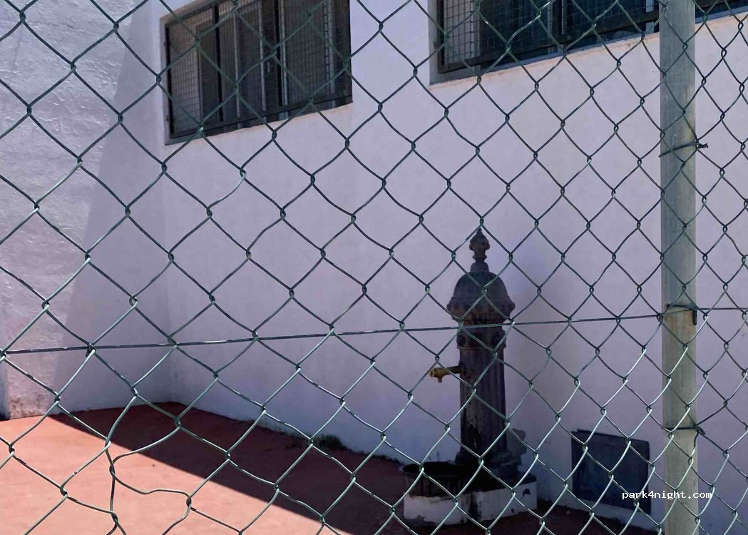 Wasserbrunnen auf dem Sportplatz mit einer guten Durchflussrate. Wir wissen nicht, ob es trinkbar ist, aber wir gehen aufgrund seiner Lage davon aus und trinken es. Wir wissen nicht, ob der Sportplatz immer geöffnet ist, aber wir kamen an einem Sonntag und er war geöffnet