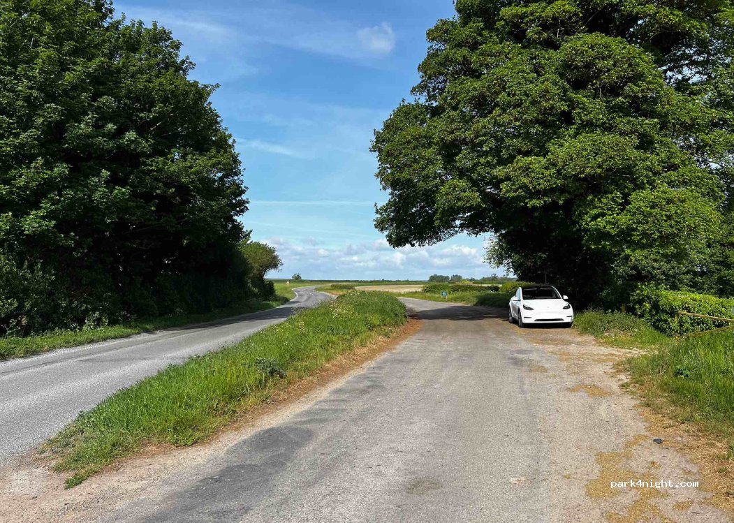Apartadero cerca del pueblo de Marham. Este nos pareció más resguardado que el otro apartadero más cercano. Dormimos bien aquí, con poco tráfico después de las 23:00. Sin embargo, es de esperar que haya mucho ruido de aviones durante el día, cuando hay vuelos desde el aeródromo cercano.