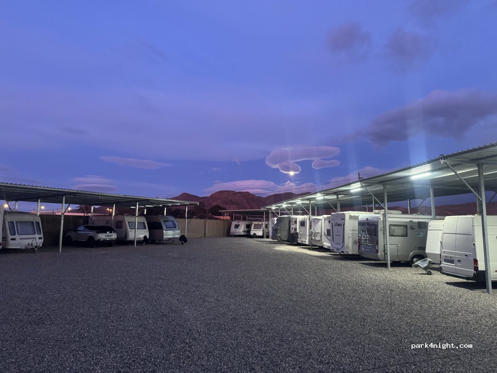 Great place for an overnight stop. Clean shower and toilet Covered parking as well. Mainly long term storage, so safe and secure. Code for gate given via WhatsApp. thanks!