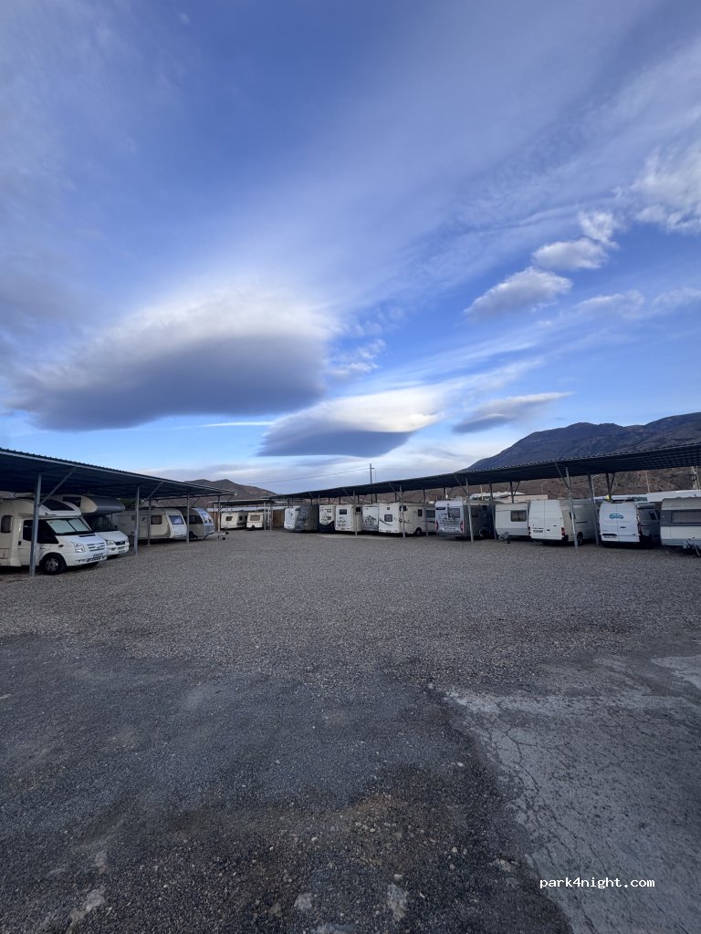 Parking para autocaravanas de corta o larga estancia. Cerca de la autovía y con buena conexión a La Alpujarra. Dentro de núcleo urbano y a 2 km de supermercado. Muy amplia para poder maniobrar sin problema. En la puerta también encontrará un número de teléfono para escribirle o llamar y poder entrar. Servicio de aguas gratis. También cuenta con zona de autorreparaciones. Si puedes hacer la reserva con antelación le pasaré el código de la puerta
