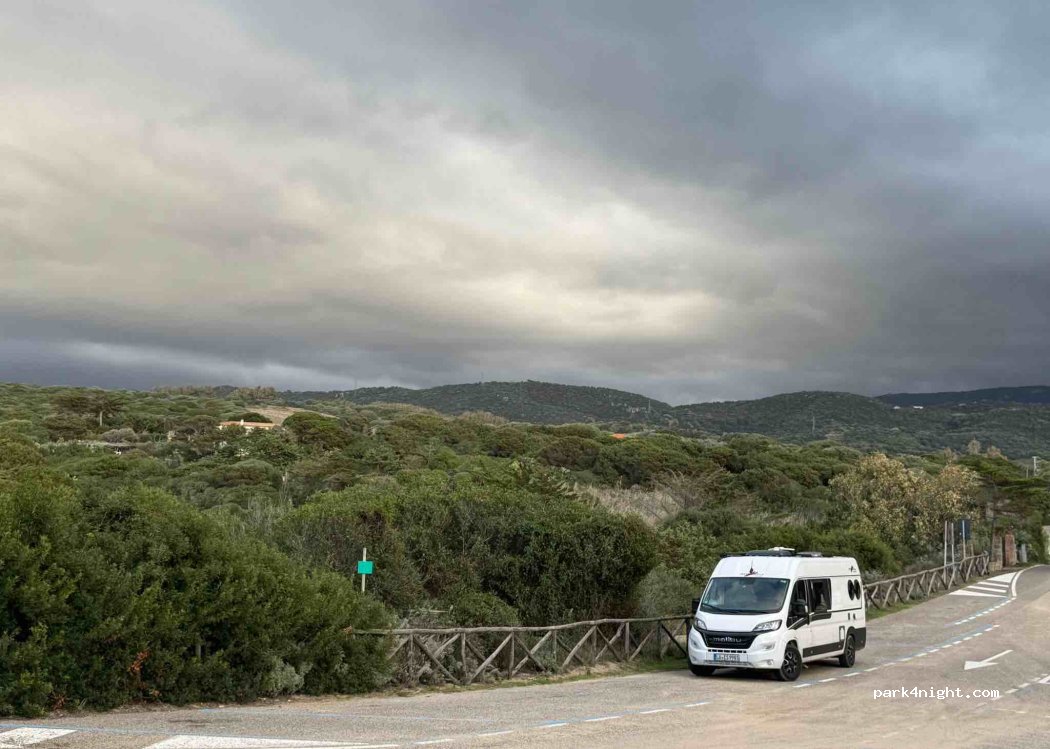 l´endroit est sympa calme la nuit hors saison mais l´itinéraires venant de santa Térésa nous a fait passer sur un chemin étroit et en camping car de 6.99 et 2.80 de haut c´était très difficile alors qu'il y avait une route beaucoup plus large un peu plus loin donc conseil prenez la route plus vers la plage de li junchi badesi vous aurez moins de galere
