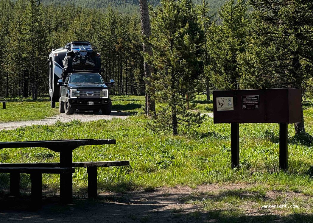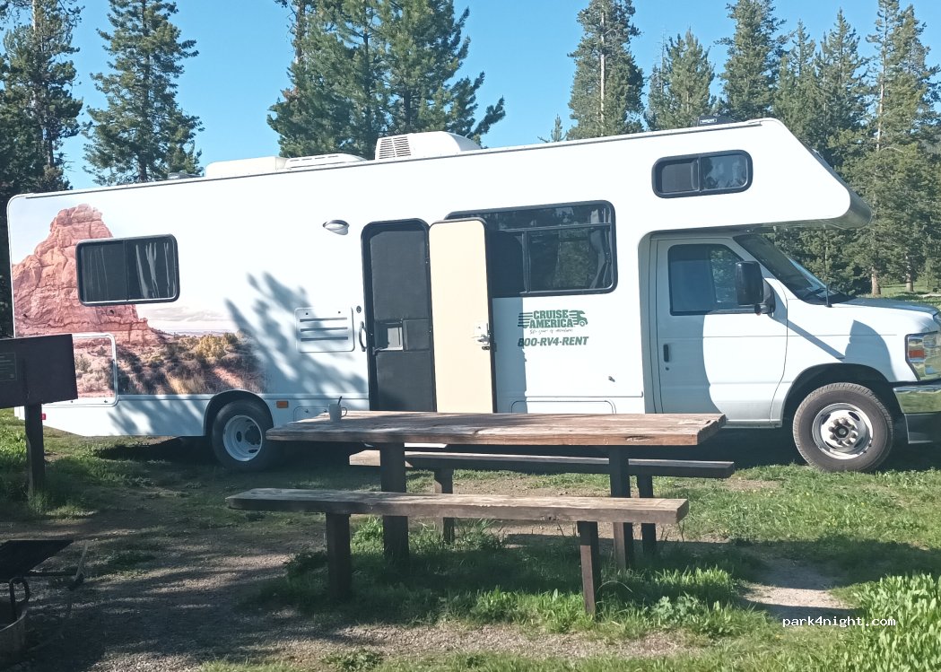 Campground sur la John D Rockefeller Parkway. 13$ en juin 2025. Le campground était complet mais ils avaient mis des emplacements supplémentaires à disposition et pour ceux qui veulent rester ils peuvent se mettre le matin sur un emplacement avec Pit Fire et tables. Très calme. Accès par un chemin en terre praticable par tous types de véhicules.