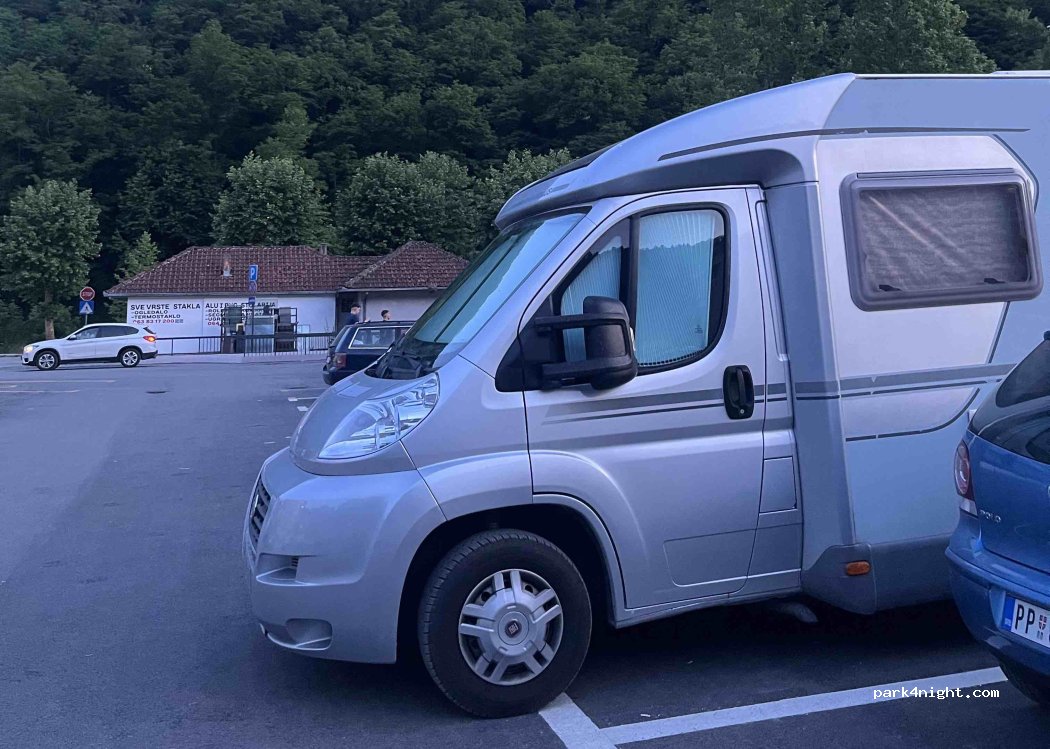Parking gratuit et spacieux dans un quartier résidentiel à côté du cimetière. Notre climatiseur de 7 m² dépassait légèrement, mais le parking est suffisamment large pour y circuler. Le terrain est plat, idéal pour une soirée tranquille. Il y a une aire de jeux pour enfants avec ping-pong, football, basket, etc. L'endroit est propre et apprécié des habitants et des enfants, offrant une ambiance agréable. Calme la nuit. Le village est à quelques minutes par la route principale qui longe la rivière.