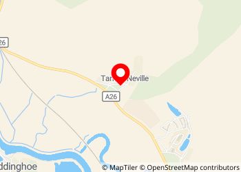 Small grassy parking lot in front of the Tarring Neville church and cemetery.