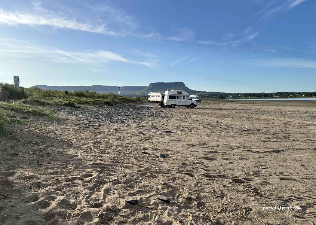 Un lugar fabuloso entre Streedagh Strand y el lago. Protegido del viento. Dos baños portátiles. Otras dos autocaravanas también pasaron la noche. Mucho tráfico durante el día, pero muy tranquilo por la noche.