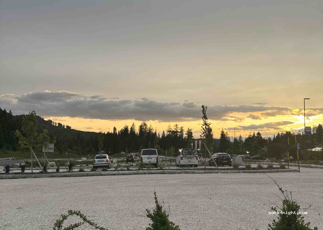 Super place et très pratique, les campings dans la région sont tous complets donc ça dépanne bien ! idéalement venez assez « tôt » vers 18h le parking est déjà bien rempli et les places pour dormir avec des bus/camping car, sont restreintes à 3 allées. C’est payant de 19-7h 1fr/h attention, on peut payer uniquement avec des pièces en euros ! des toilettes sont à proximité un peu plus bas du parking.