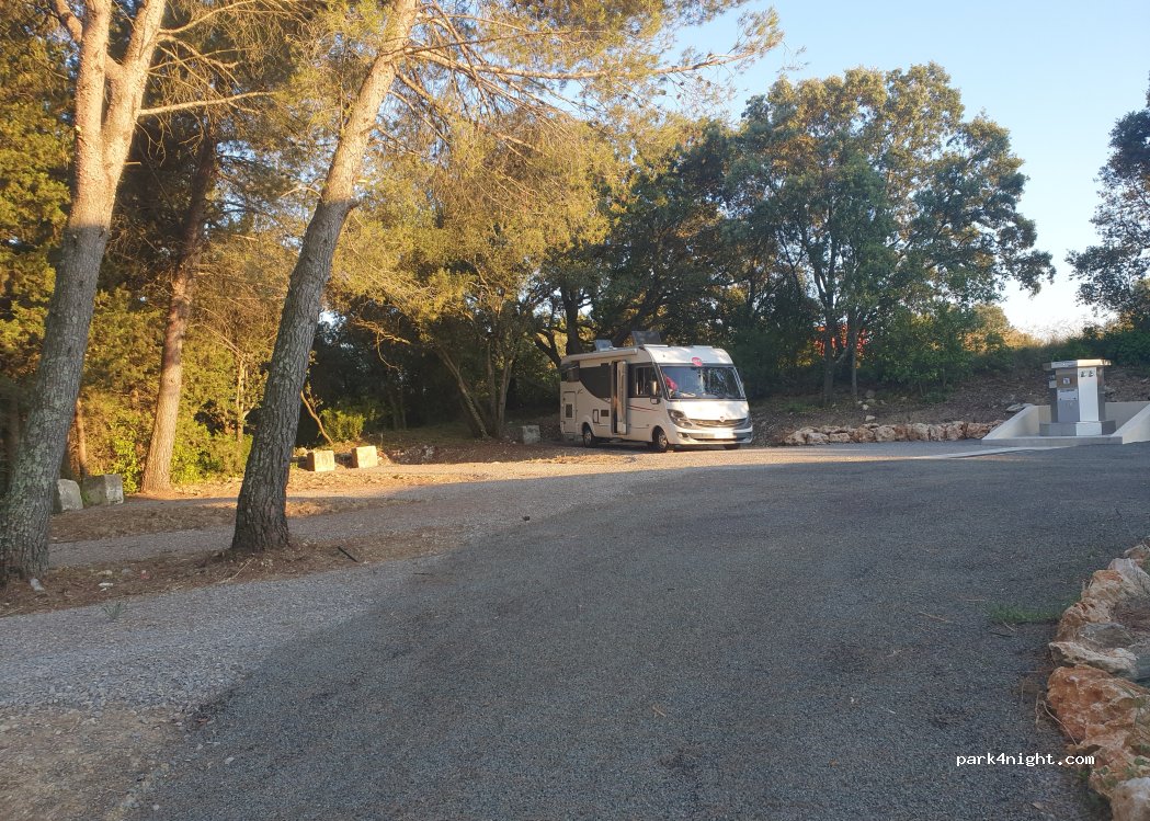 Emplacement très propre et adapté au camping car. 5 emplacements ombragés. Nuit caniculaire (du fait de la saison) mais lieu paisible pour la nuit et petit vent frais pendant la nuit. Borne electrique et de branchement d'eau accessible via Qipeo en bluetooth (je n'ai pas testé le fonctionnement). Pas de toilettes, pas de douches.