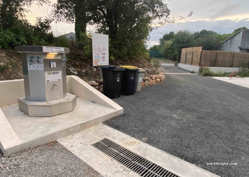 Aire neuve, propre et super calme. Accès avec un 7m50 sans problème. Comme pour les routes dans les petits villages à éviter si l'on ne connait pas bien son matériel. Nous n'avons pas eu besoin des services. Grand merci à la commune.