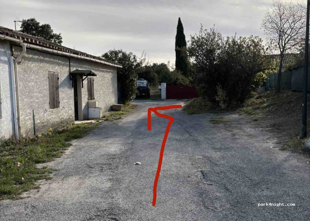 Great free stop. With 5 parking places, shaded and level, and services (drinkable water, electricity and waste disposal - all for a small fee). It’s also very quiet and the parking spots are well spaced out. Note: after the little roundabout take the little road that seems to disappear on the left. That’s where the spot is.