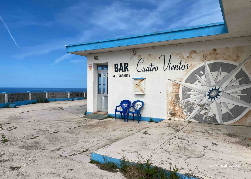Parking mixto sin servicios, a ambos lados de la carretera, el derecho con más pendiente y más complicado de nivelar, al final de la carretera, restaurante, se jefe ver también el centro de interpretación del medio marino de Peñas.