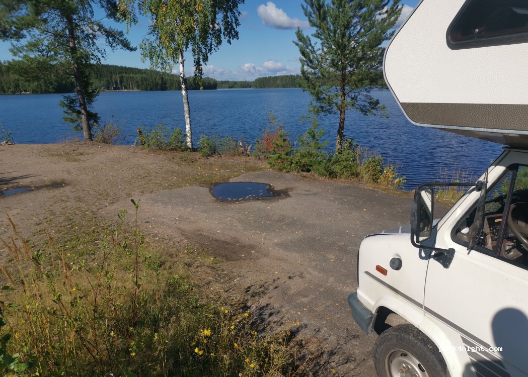Vaikutti ihan mukavalta paikalta jos sijottaa itsensä puskien taakse lähelle vettä. Tieltä ei näy autoasi näin, mutta mökkejä on veden reunoissa niin ehkä ei tarpeeksi omaa rauhaa.