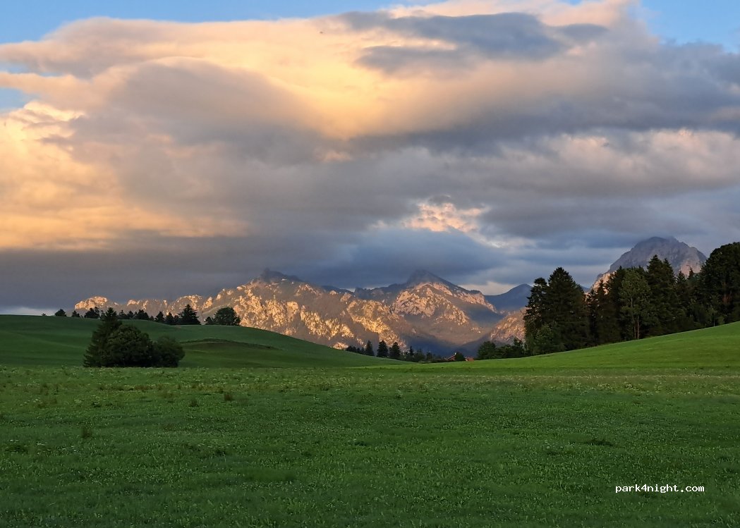 Très bel endroit calme avec une vue magnifique sur les montagnes, à 15mn de Füssen et 20mn du château de Neuschwanstein. Merci à cette belle famille pour leur hospitalité, de nous accueillir gratuitement (peut être même que certaines personnes en profitent !) Malgré tout, j’ai laissé un billet dans leur boîte aux lettres. Petit conseil, il vaut mieux arriver tôt, car très prisé.