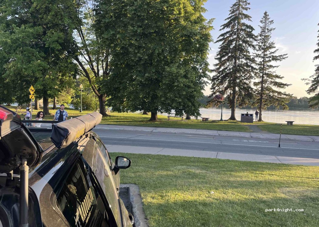 Stationnement gratuit durant 24h avec une très belle vue sur rivière, tables de pique nique. Calme et sûr. Toilettes publiques à 200m ouvertes de 06h00 à 23h00 avec eau potable.