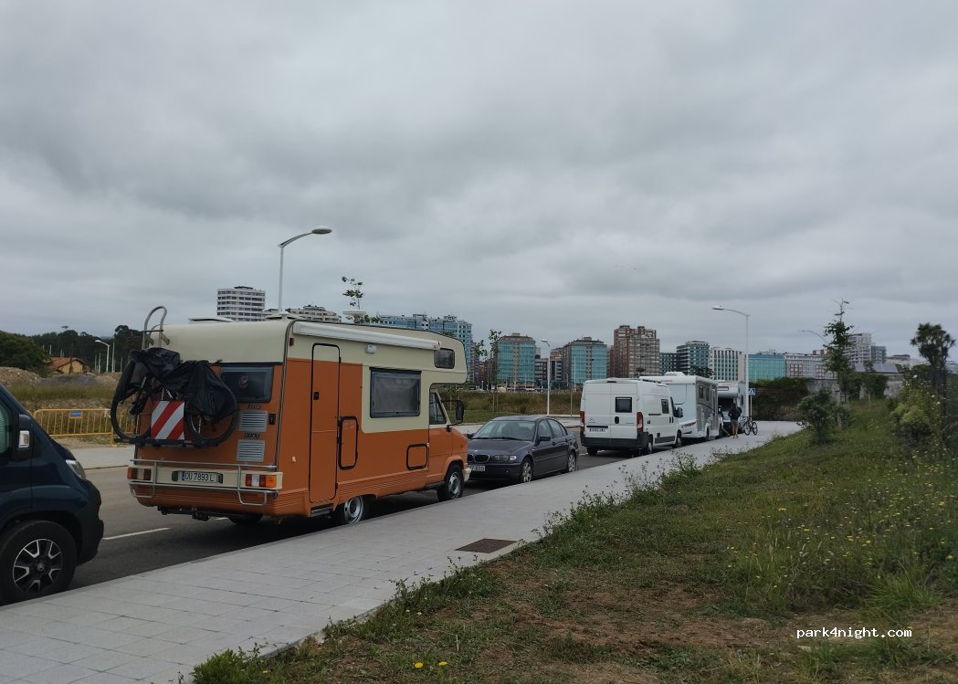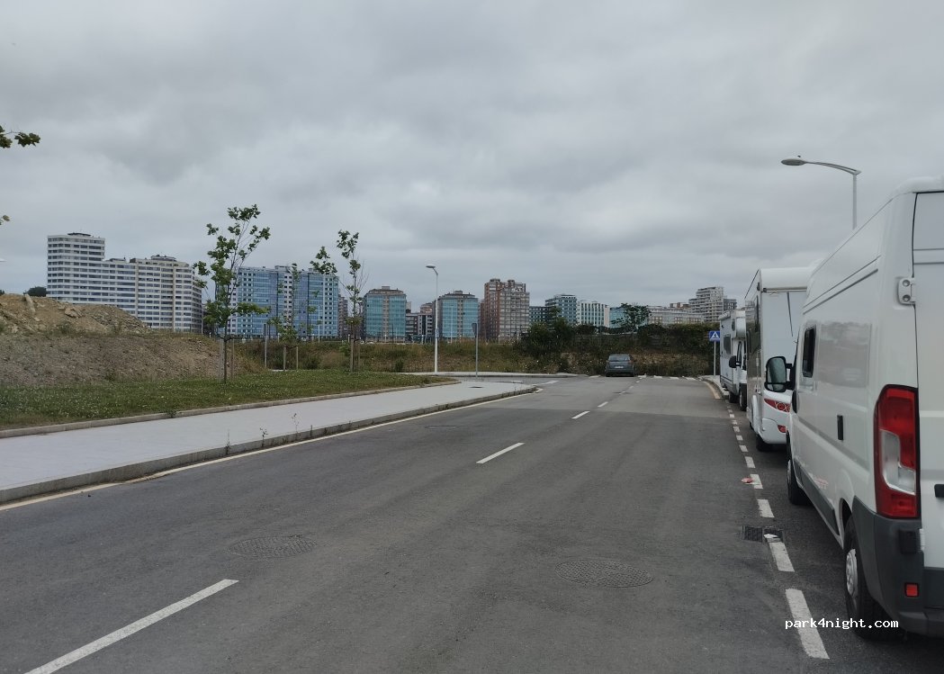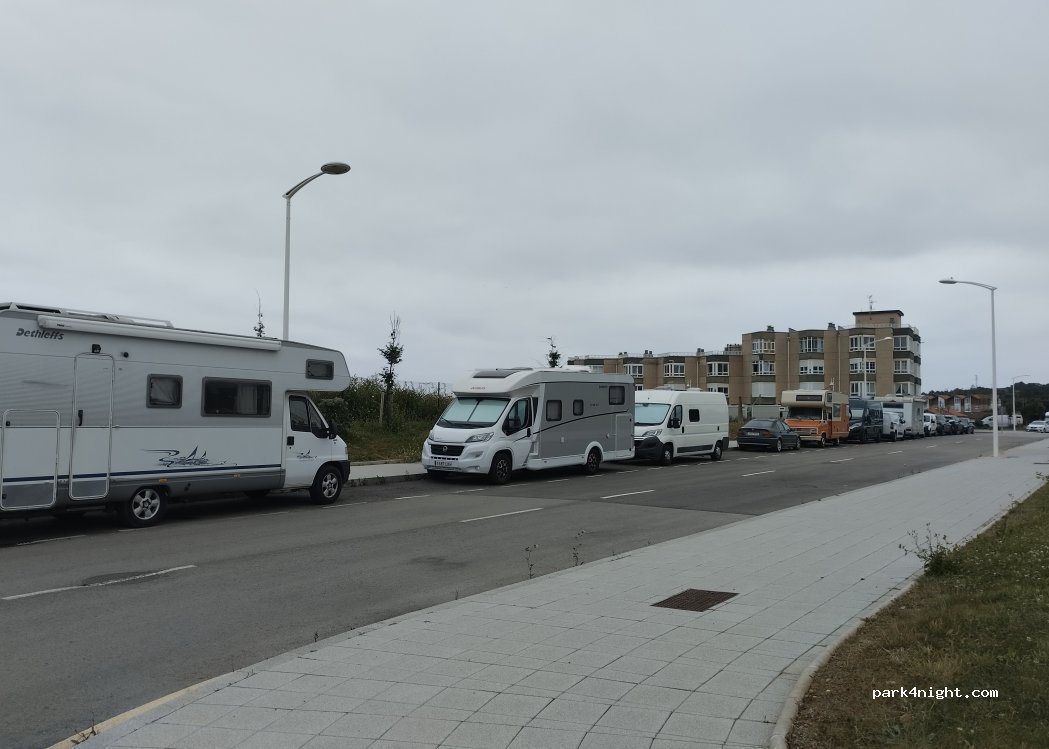Es un aparcamiento en línea normal como el de cualquier ciudad. Aunque no es zona de mucho tráfico pasan los coches pegados a las autocaravanas. Este espacio seria para 5 0 6 autocaravanas si encuentras sitio. Playa de piedras y bar a 1 minuto caminando. Sin servicios.