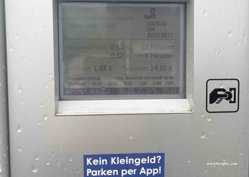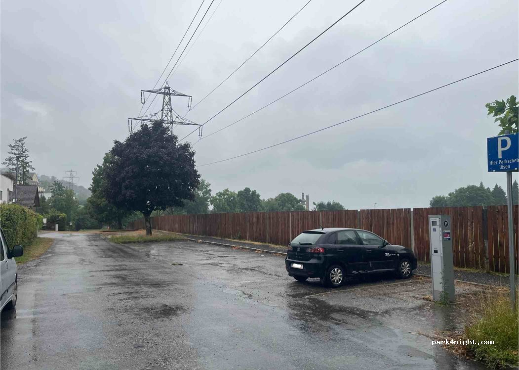 Parking area behind the sports field. Unlike the one in front, which is located just next to the street, this is a quite backstreet with houses. The lot seems to be made for tourists visiting the lake, a ticket is needed between 9am and 6pm. No prohibition signs. On the other side of the sports pitch there is a tiny playground and it’s a 10mins walk to the nature swimming area in the lake. I was allowed to use the toilet in the sports club when it was still open (around 7pm)