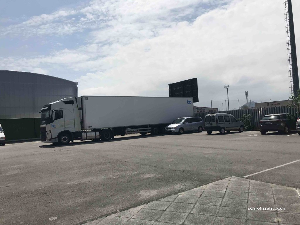 Parking devant Repsol, sur une avenue passante, donc bruit garanti. Parking partagé avec voitures, bus, camions et remorques.
