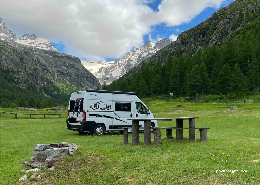 Posto che a unico scopo raggiungere il Rifugio Vittorio Emanuele....Il camping e disposto si terreno sconnesso con erba......i camper sono alloggiati in zona molto ombrosa...nn c'è connessione Internet......scarico wc solo a cassetta . .ritengo che 2 persone e camper 25 € siano Troppe.....( la mulattiera che sale al Rifugio e interdetta alle Bici ......clima molto freddo.